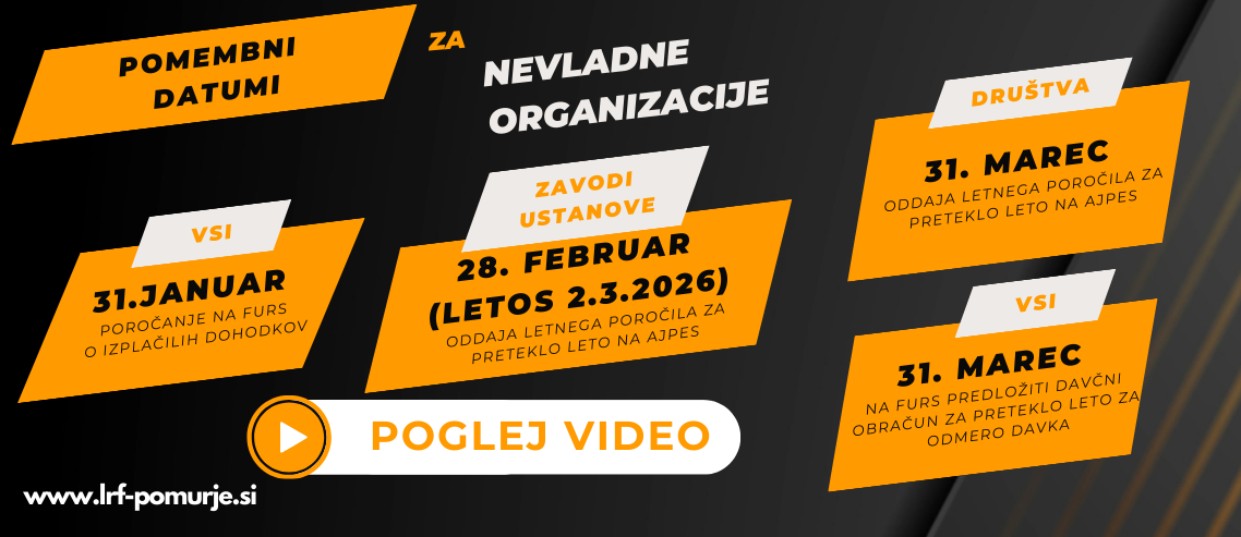 Z začetkom leta se bližajo pomembni datumi, ki jih nevladne organizacije ne smemo zamuditi, zato smo za vas pripravili video, v katerem pojasnimo, kateri datumi so pomembni za zavode, društva in ustanove in jih je potrebno upoštevati. Posebej bi želeli informirati tiste nevladne organizacije, ki nimate urejenega računovodstva, da ste pozorne na to, da poročanjaBeri dalje